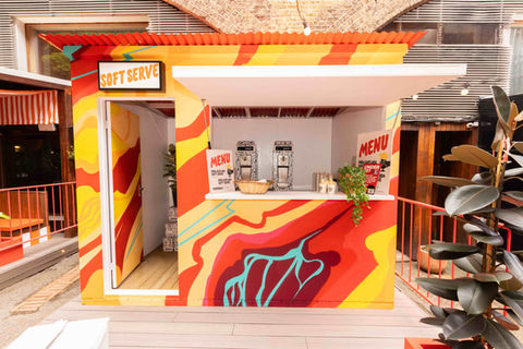 An enormous and unexpected visual interpretation of the two iconic brands quite literally mixing up the taste of the summer. And what an entrance it made. Rolling through the streets of London, the soft-serve serving truck (yes…the truck actually churned out Piña Oatladas) was stopping traffic and turning heads, before heading to its final destination, Paradise Arches - the Malibu x Oatly pop-up in East London.